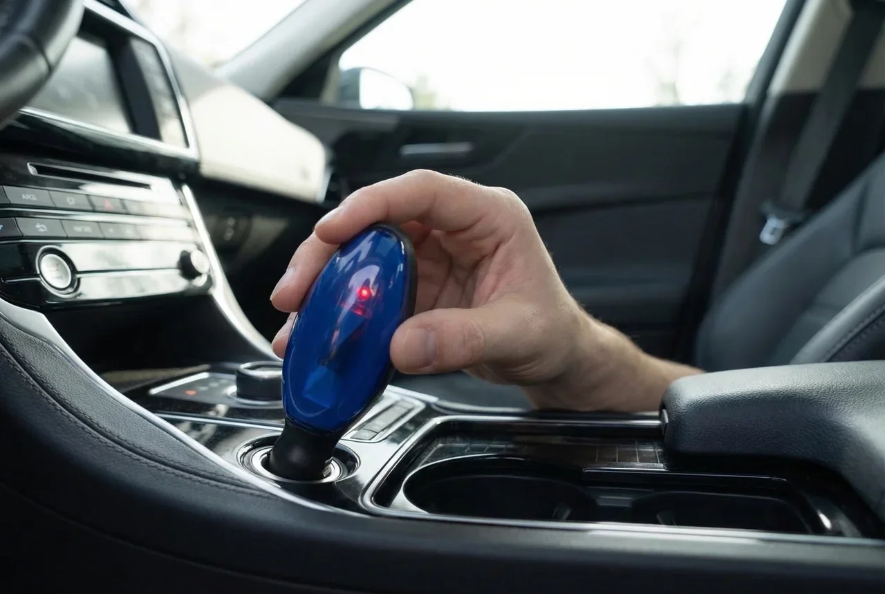 I plugged it into the cigarette lighter port on my center console, the blue light on the top of the device lit up, and that was it. Literally that was it. No setup. No app. No pairing. No instructions beyond "plug it in."